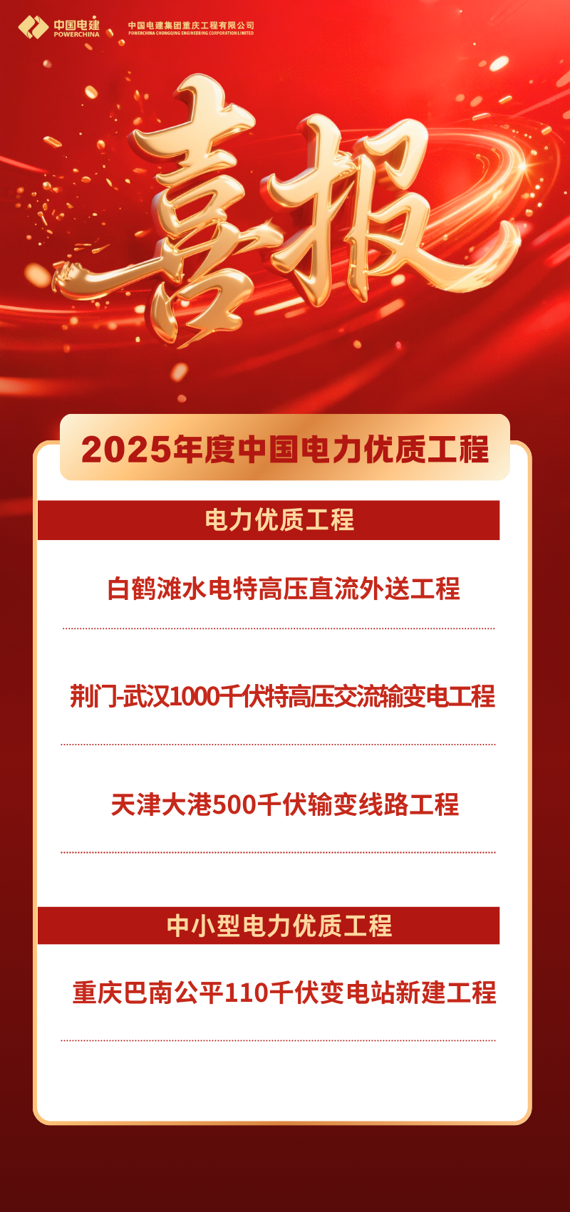 • 重慶電建四個(gè)項(xiàng)目獲評(píng)“中國電力優(yōu)...2025-08-18